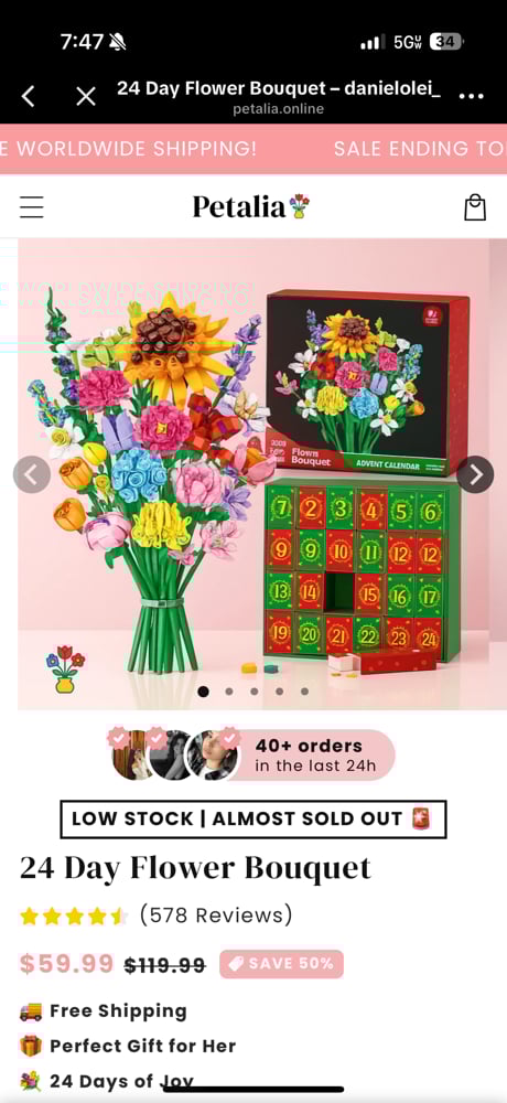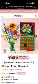 The Flower Advent Calendar includes 24 mini Block flower pieces, with each piece representing a day in December leading up to Christmas. As you open each compartment, the pieces come together to form a full, vibrant floral bouquet